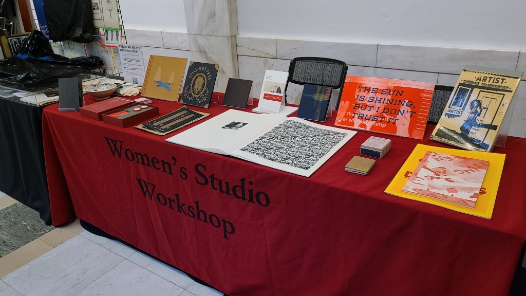 Each of the three panels focuses on a different topic: Lukaza Branfman-Verissimo and Erin Zona discuss their work as artists, with Zona providing a fascinating history of the Women’s Studio Workshop. Leo Hsu (Silver Eye Center for Photography), Kate Joranson (Frick Fine Arts Library at the University of Pittsburgh), and Brittany Reilly (Aaronel deRoy Gruber Foundation) discuss their efforts to maintain, process, and grow archives. To cap it off, artist Christopher Kardambikis hosts four artist/publishers on a live recording of the Paper Cuts podcast.
