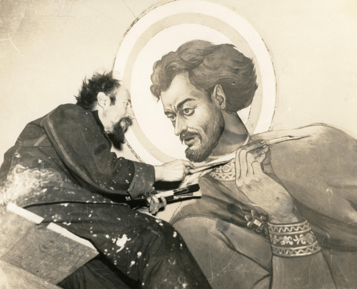 When I asked Kate Pirilla about her experience conserving the murals, she said: “I can’t help but think of the photos of Vanka painting, the rickety sparks and scaffolding. There was no safety at all and he did it so fast.” In those photos of Vanka, you can see the fervor in his eyes and the precarity of the whole setup. Vanka knew he was not just painting the inside of a church, but rather making a political statement. “I like the labor aspect of the murals,” Pirilla expanded. “There’s this common thread throughout Pittsburgh history of advancing workers’ rights. The only reason these paintings survived was because of immigrant labor.”
