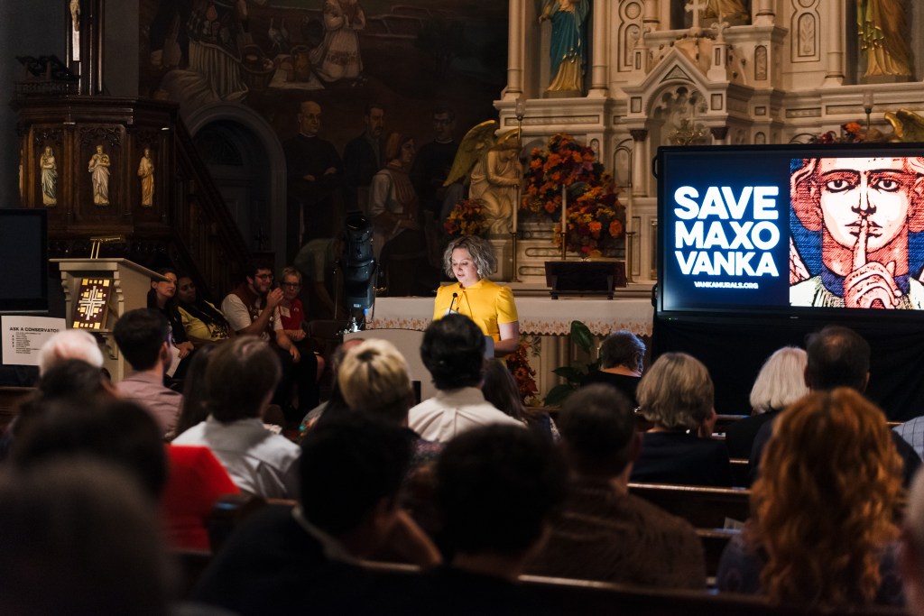 Save Maxo Vanka is an nonprofit organization dedicated to the physical conservation of the murals and the educational legacy of their message. This mission, however, takes what all of us in the arts seem to be looking for: cash. “Paint the Town Maxo” was the second fundraiser of its kind for Save Maxo Vanka. But its meaning is far more than fundraising itself.