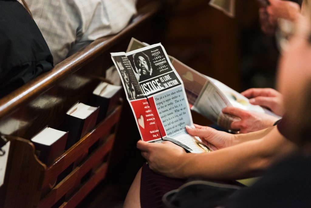 When we sat down in the main chapel to hear remarks from the education team, Roman Benty threw the audience into the deep end by having everyone unfold their programs to reveal a blank space asking: “What is your definition of love?”