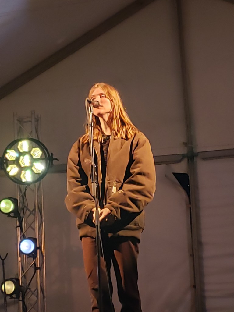 Anhedönia started the concert with the final track of her 2022 album Preacher’s Daughter. I thought to myself—wow, she’s really throwing us in the deep end here, not starting out with the sweeter, more structured crowd-pleaser “American Teenager” but instead “Strangers.” So, the experience began with Anhedönia crooning “I tried to be good, am I no good? / Am I no good? / Am I no good?” in a song that is literally about being cannibalized. The whole performance was a balance between the tender depth of her music and the outdoor-concert vibe. Once Anhedönia did get to “American Teenager,” though, the whole crowd danced along with her. Her stage presence is understated, her voice soft and firm but still melodic. Though her music swells and crescendos, this particular stage venue felt intimate, and she stepped down into the crowd at several moments to sing with the people in the front row.