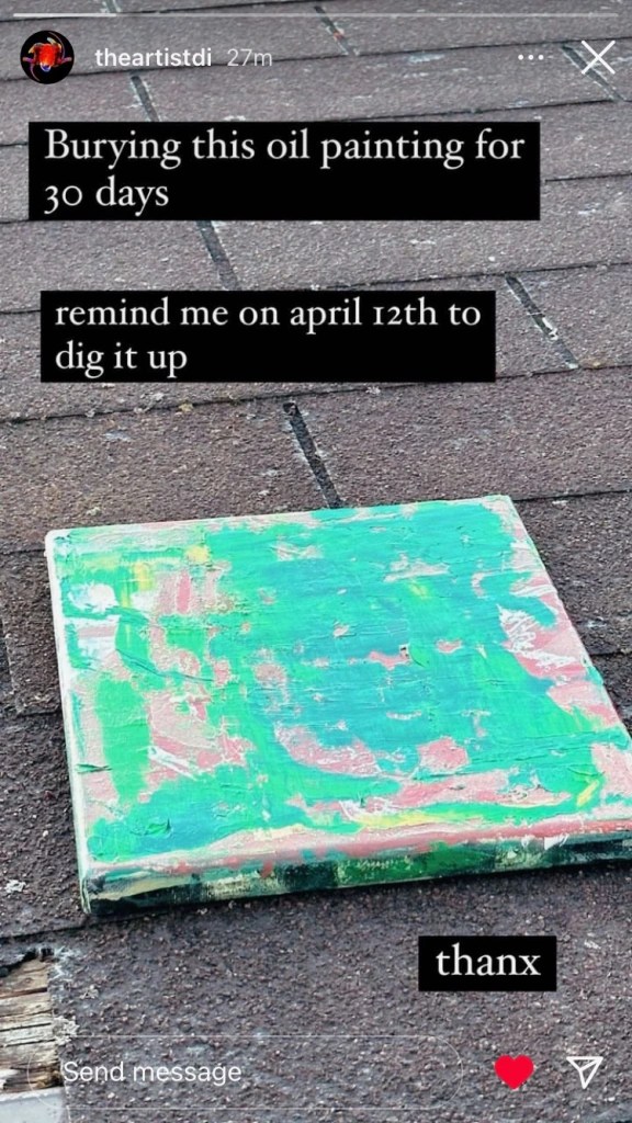 Does anybody know if Di dug up his oil painting? Did it get rained on? He asked for a reminder, so now he’s getting one.
