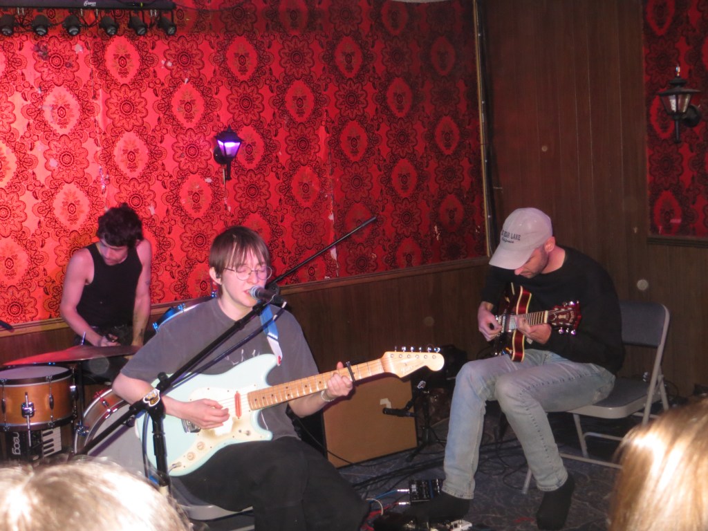 Nestled in the hills of Allentown, Bottlerocket Social Hall exists as a place outside of the concept of time, still comfortably nestled in its history as a 70’s lyceum social hall with dark wood and velvet carpet paneled walls. Similarly, Florist is currently in a magic in-between place release-wise, months after their raved about contribution “Riding Around In The Dark” to the I Saw The TV Glow soundtrack and two years after the release of their self-titled fourth album. Hints at future work– a completed album teased on lead vocalist Emily Sprague’s band Instagram account– were confirmed at the fall show, which featured a setlist confined to no particular era of Florist music, instead highlighting new unreleased