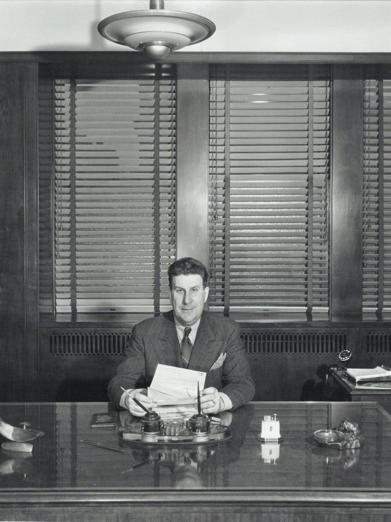 What is this man’s job? Parks clearly demonstrates the function of each worker through their actions: a labeler painting labels onto grease cans, a shipper loading those cans onto a railcar, etc. What action is this suited man performing—what is his function? His function is to sit in a comfortable chair in a private office and not be bothered.