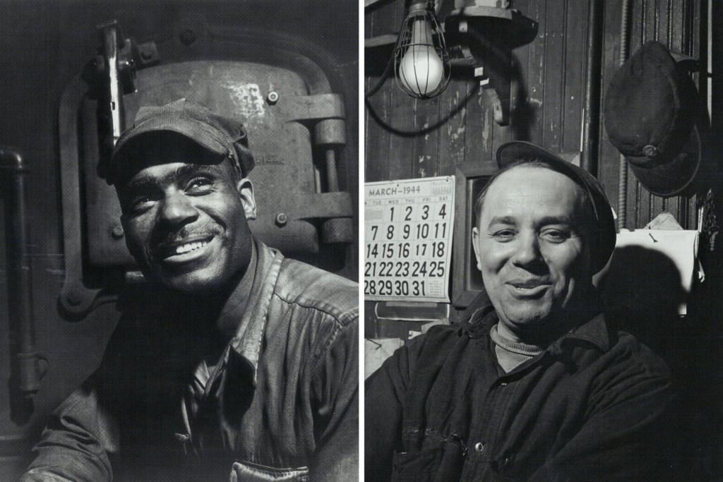 The most astonishing quality of this photo: the worker on the left is Black, and the one on the right is not. Pittsburgh didn’t have Jim Crow laws, but racial segregation and discrimination were absolutely alive and well. Black workers were the last hired and first fired, given the most dangerous and low-paying jobs, and initially barred from union membership. But here are two men of two races seated so close to one another that their arms touch, united across the color line by their shared class interest.